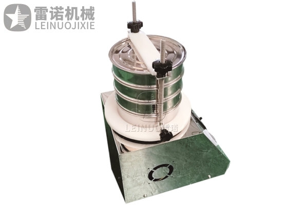 4、把被檢驗物料放入上端的標準篩框里,蓋上標準篩上蓋,根據(jù)標準篩框的總高度調整調節(jié)桿高度,然后用壓板和鎖緊螺母對標準篩框進行定位壓緊(注: 兩側用力應一致)。